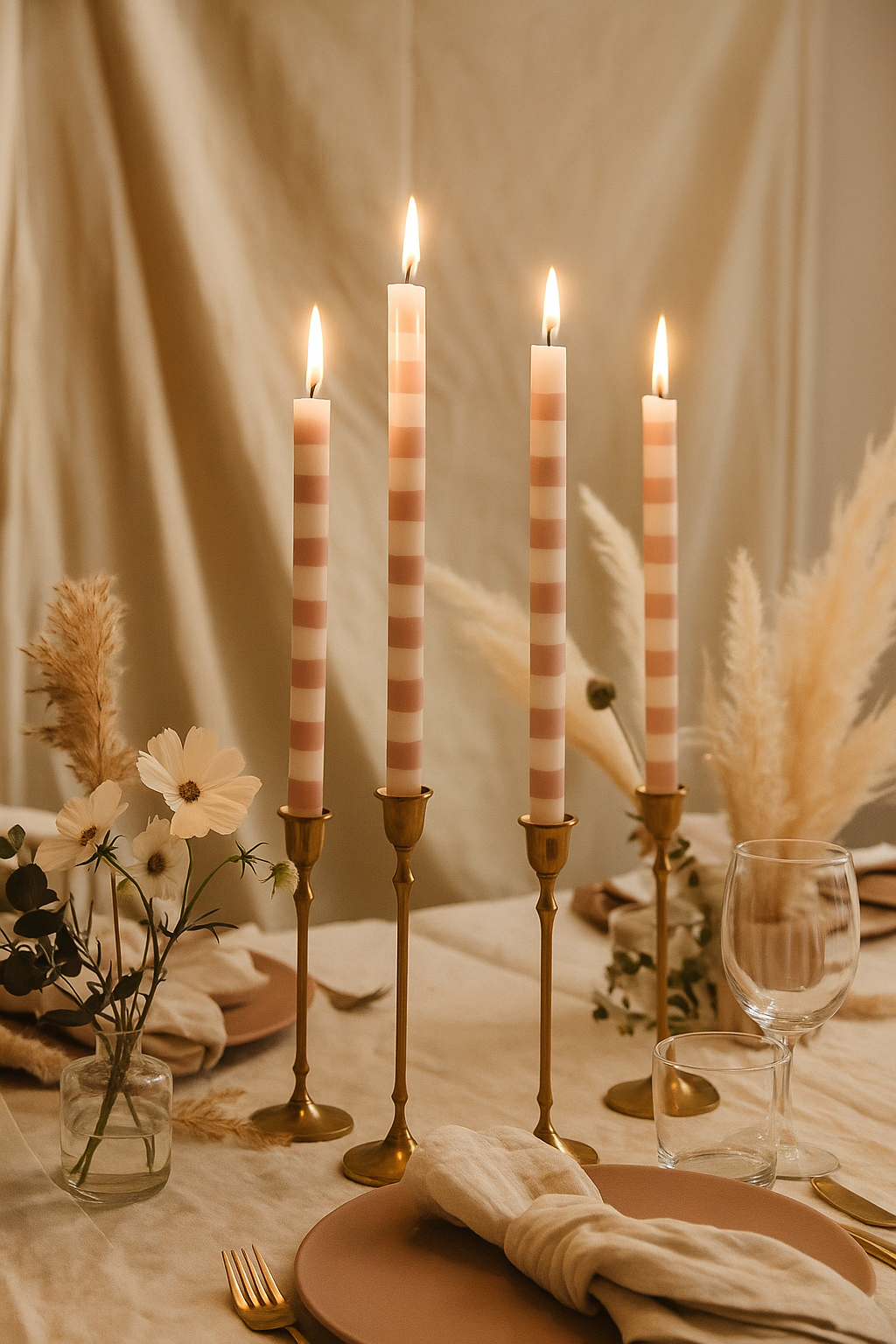 Hand Painted Dinner Candle Pair - Fun Stripes - Dusty Pink