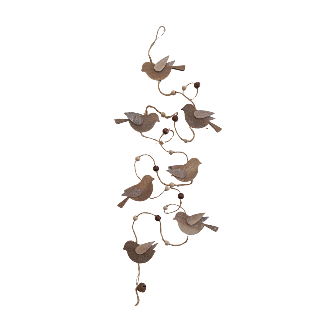 This long wooden bird hanging garland offers a charming, rustic accent for your space. Crafted from natural wood and gently used, it brings a warm, organic feel to any room or event. Ideal for adding subtle decorative interest, this garland combines durability with timeless appeal, perfect for those seeking eco-friendly, stylish décor.
