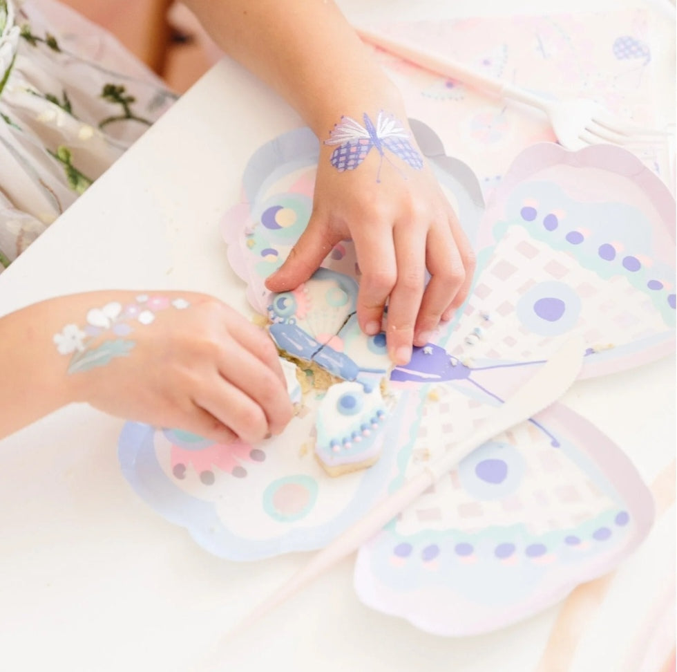 Beautiful butterflies! Featuring holographic silver foil elements, these tattoos make our hearts flutter!