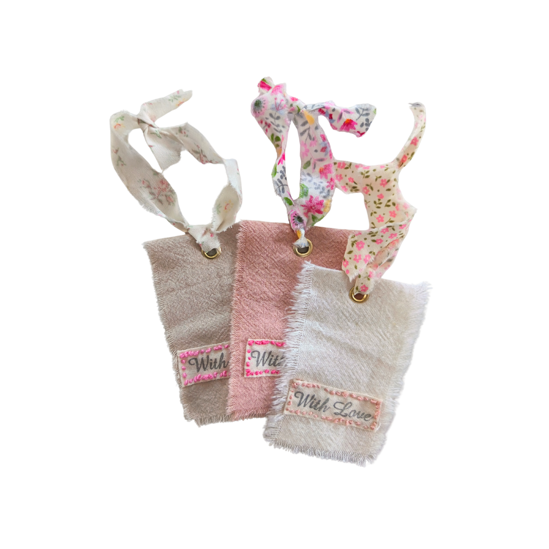 These fabric gift tags offer a unique touch to any gift. Made from high-quality fabric, they are handmade, durable and stylish. Personalize your gifts with these tags and elevate your presentation. Perfect for any occasion, these tags add a special touch to your thoughtful gesture.