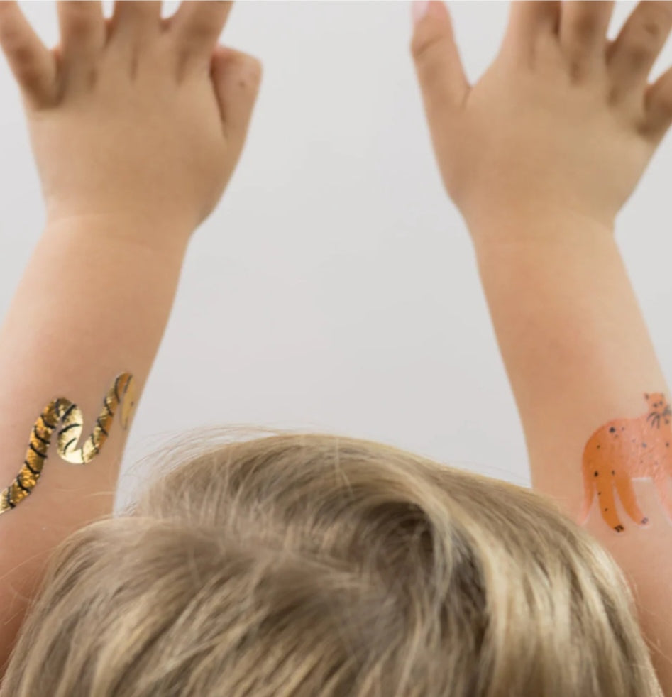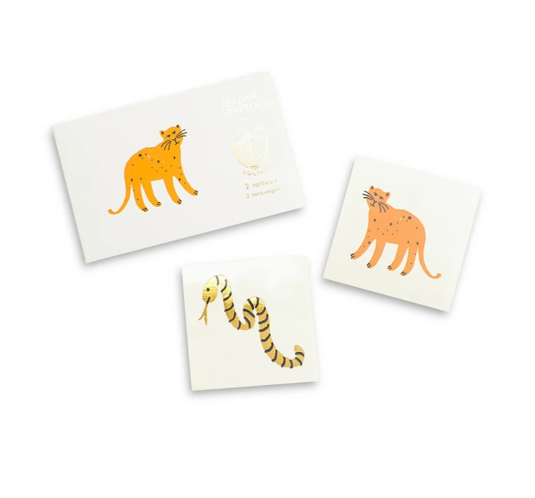 Party animals! Featuring fun colors and gold foil, these tattoos are where the wild things are!