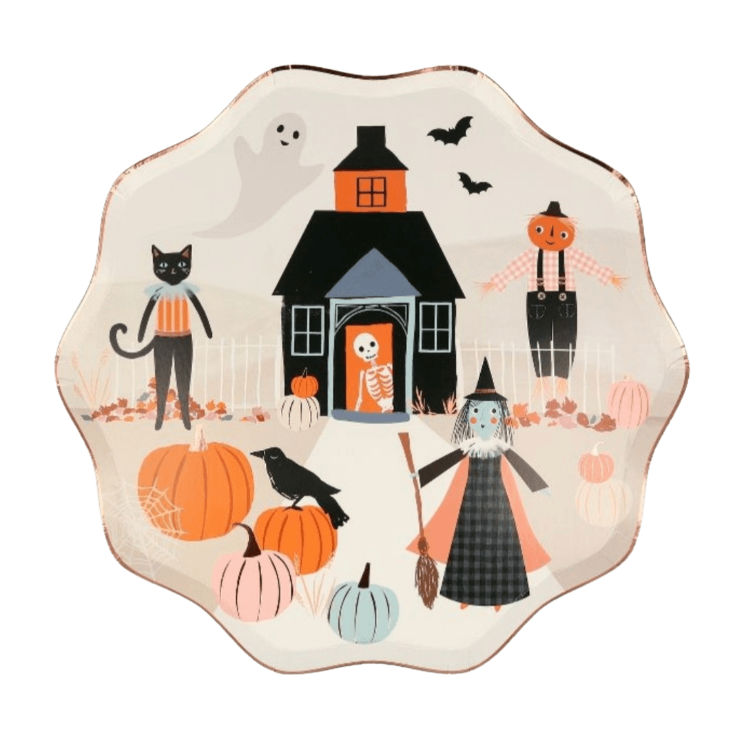 Make your Halloween table look family friendly with our fabulous pumpkin patch paper plates. They feature happy Halloween icons with stylish gingham print details, and Halloween shades of black and orange.