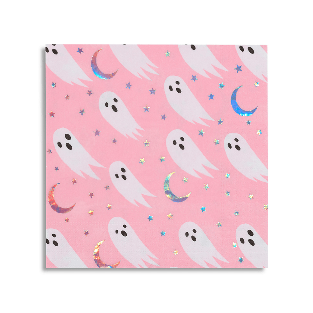 Oh hey, boo! Featuring holographic silver foil and neon coral, these Halloween ghost napkins are seriously spooky!
