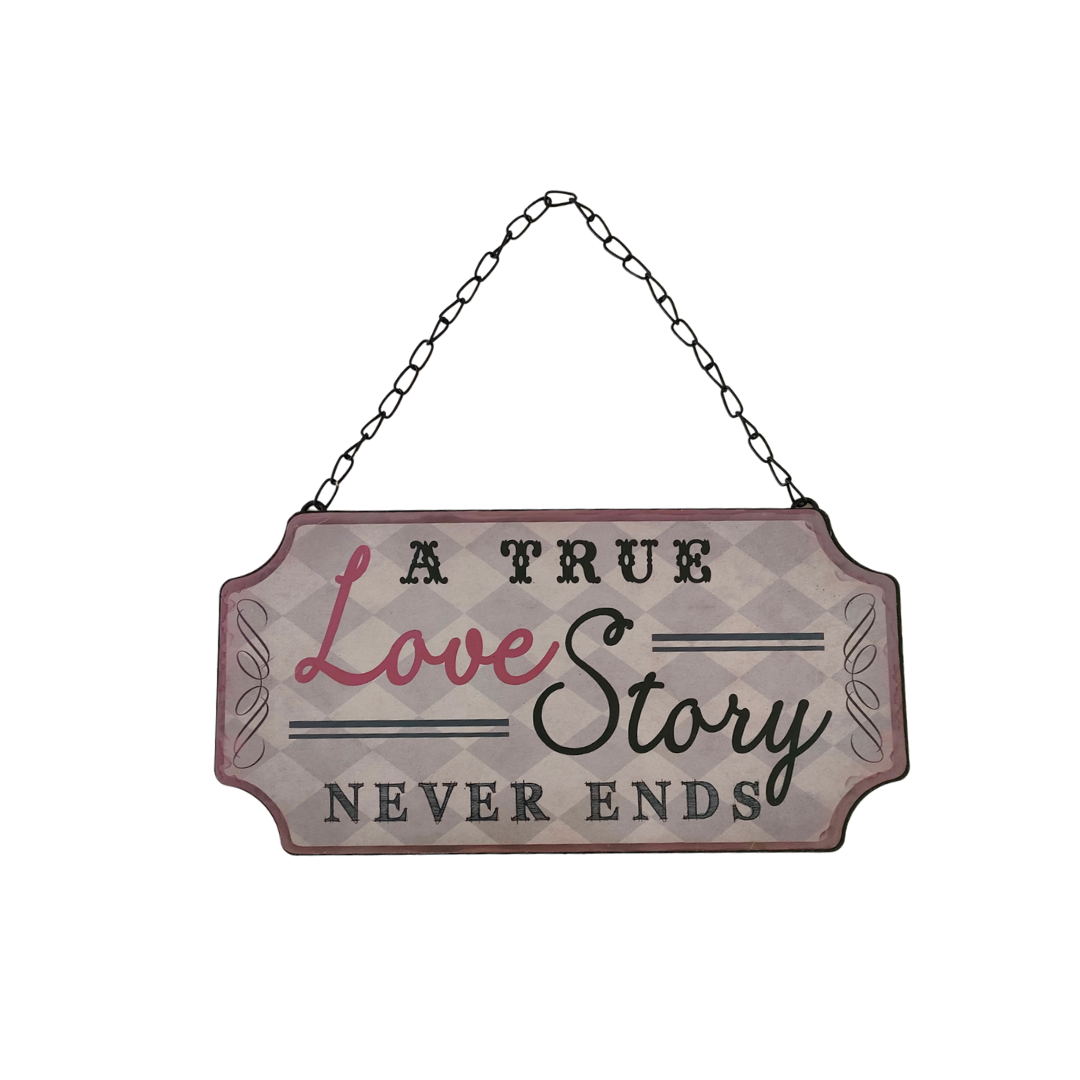 This charming "True Love Story" sign is crafted from durable tin, offering a timeless piece of secondhand decor in impeccable condition. Its vintage appeal adds character and warmth to any space, making it an ideal accent for those who appreciate meaningful, quality decorations with a story to tell. Perfect for enhancing your home or gifting to someone special.